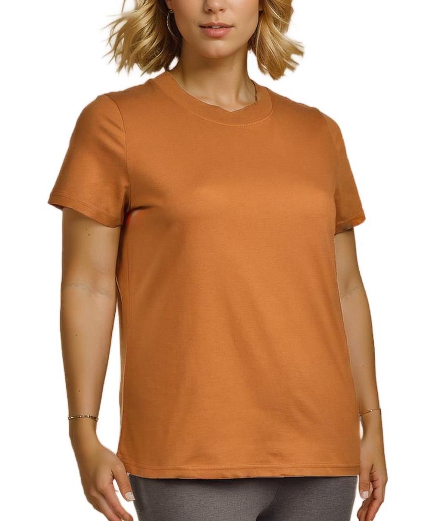 Дамска тениска, изработена от висококачествен памук. Оранжев цвят, къси ръкави и класическа кройка. Подходяща за ежедневно носене, осигуряваща комфорт и стил през целия ден.