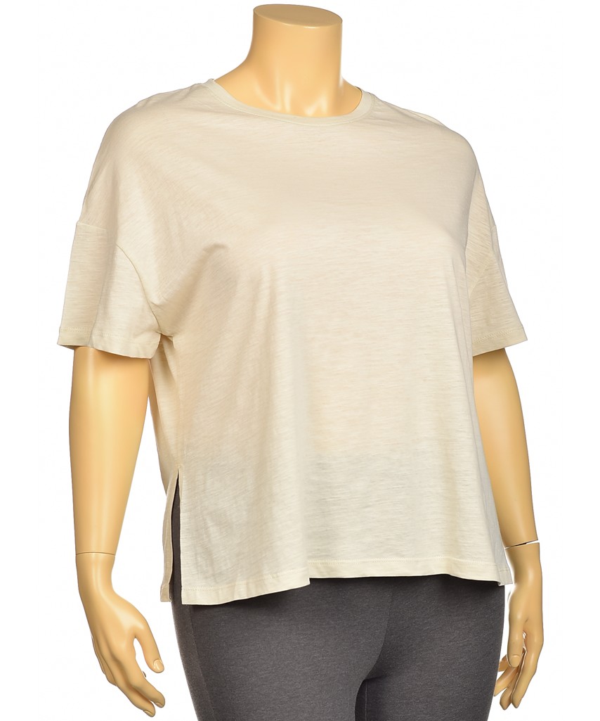 Дамска тениска от мек памук, осигуряваща комфорт и дишаемост. Съчетава класически дизайн с къси ръкави и леко разширен силует. Идеална за ежедневие или спортни комбинации. Подходяща за всички сезони.