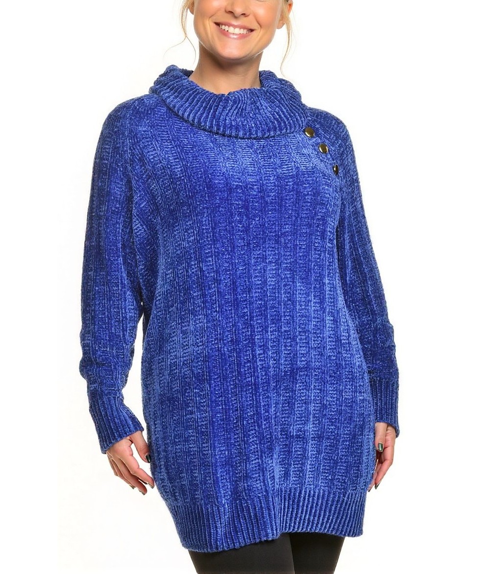 Уютна дамска туника в наситено син цвят, мека плетена материя, дълъг силует и свободна кройка. Голям поло-як и декоративни копчета на рамото придават стил и топлина за студените дни. Винаги стилна!!!!