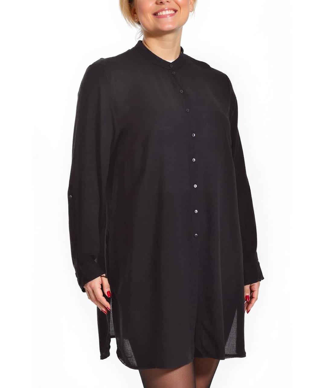 Черна дамска туника от вискоза с прав, свободен силует. Дълги ръкави, копчета по цялата предна част. Лека, дишаща и подходяща за всеки ден и офис. Идеална за офис, разходки и вечерни комбинации. Сега.
