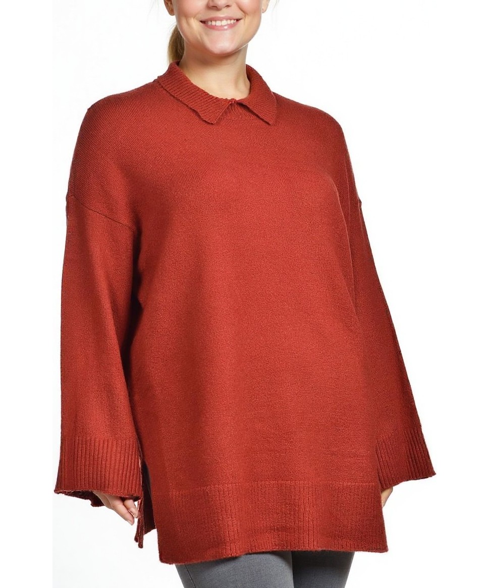 Удобна дамска туника в топъл ръждив нюанс. Свободен силует, широки ръкави, поло яка и рипсен подгъв. Меко плетиво, практични странични цепки и перфектна за ежедневие и есенни комбини. Стилна опция.!!!