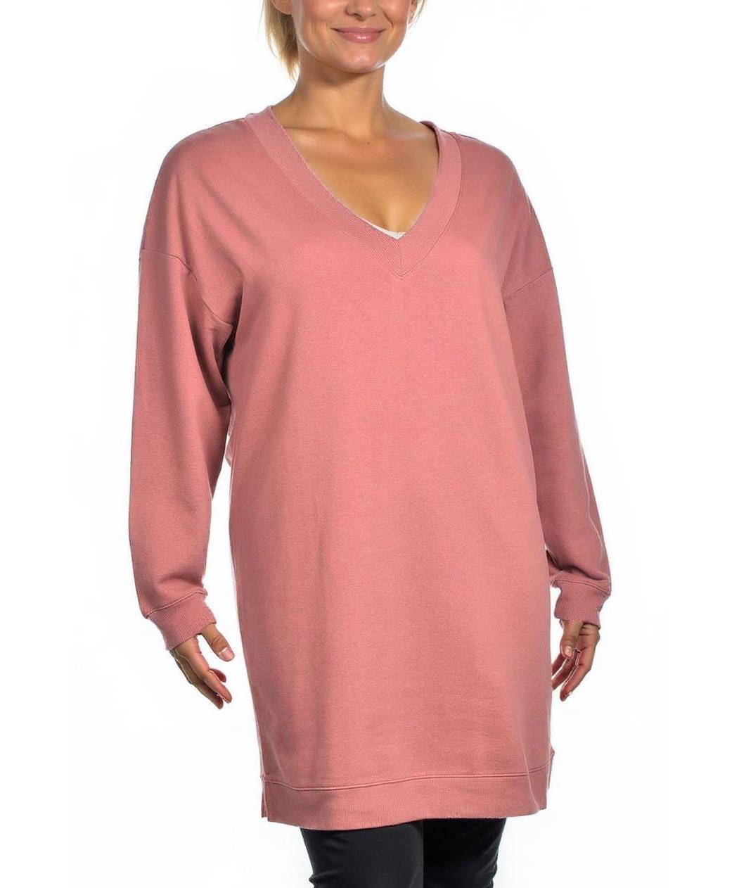 Удобна дамска туника от 100% памук в нежно прасковен цвят. Свободен релаксиран силует с V-образно деколте и дълги ръкави. Мека, дишаща и лесна за поддръжка – перфектна за всекидневие и уют.