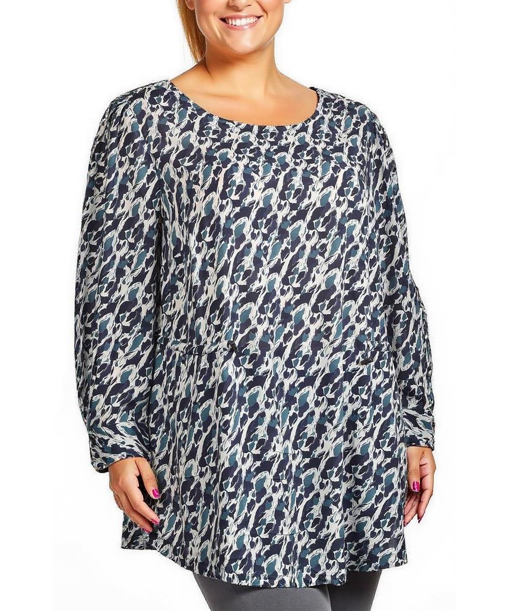 Дамска туника с дълъг ръкав и абстрактен десен, изработена от вискоза, предлага комфорт и стил. Идеална за ежедневна употреба, съчетаваща модерно излъчване с лека и приятна материя.