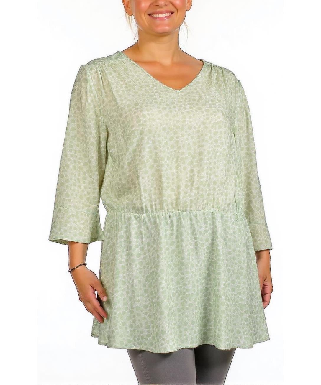 Дамска туника от вискоза с нежно светлозелен цвят и деликатен флорален принт. С дълги ръкави, тя осигурява комфорт и стил за ежедневието. Подходяща за всякакви поводи и съчетаема с панталони или клинове.