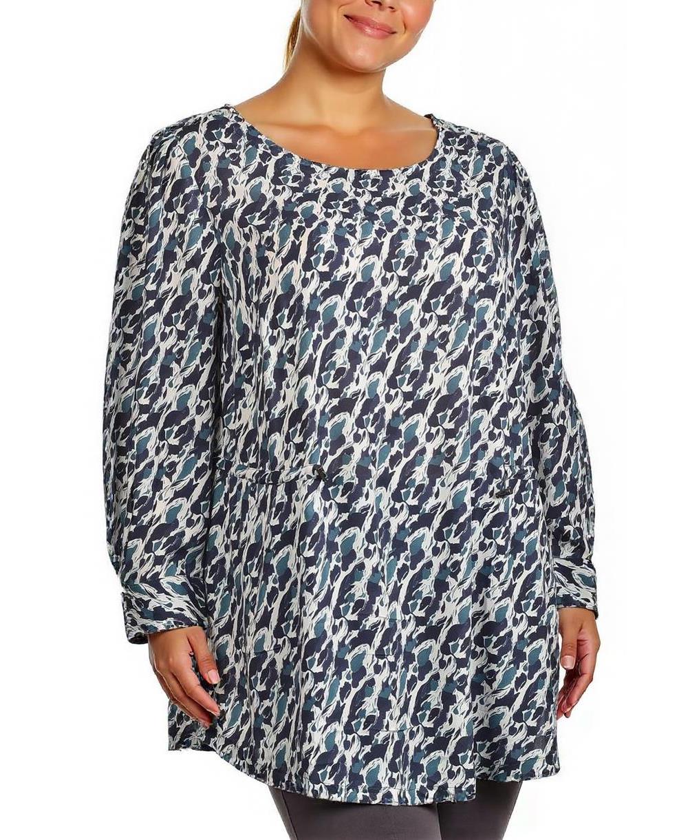 Дамска туника, изработена от висококачествена вискоза, предлагаща комфорт и стил. Моделът е с дълги ръкави и уникален абстрактен десен. Идеална за ежедневна визия с модерен привкус.