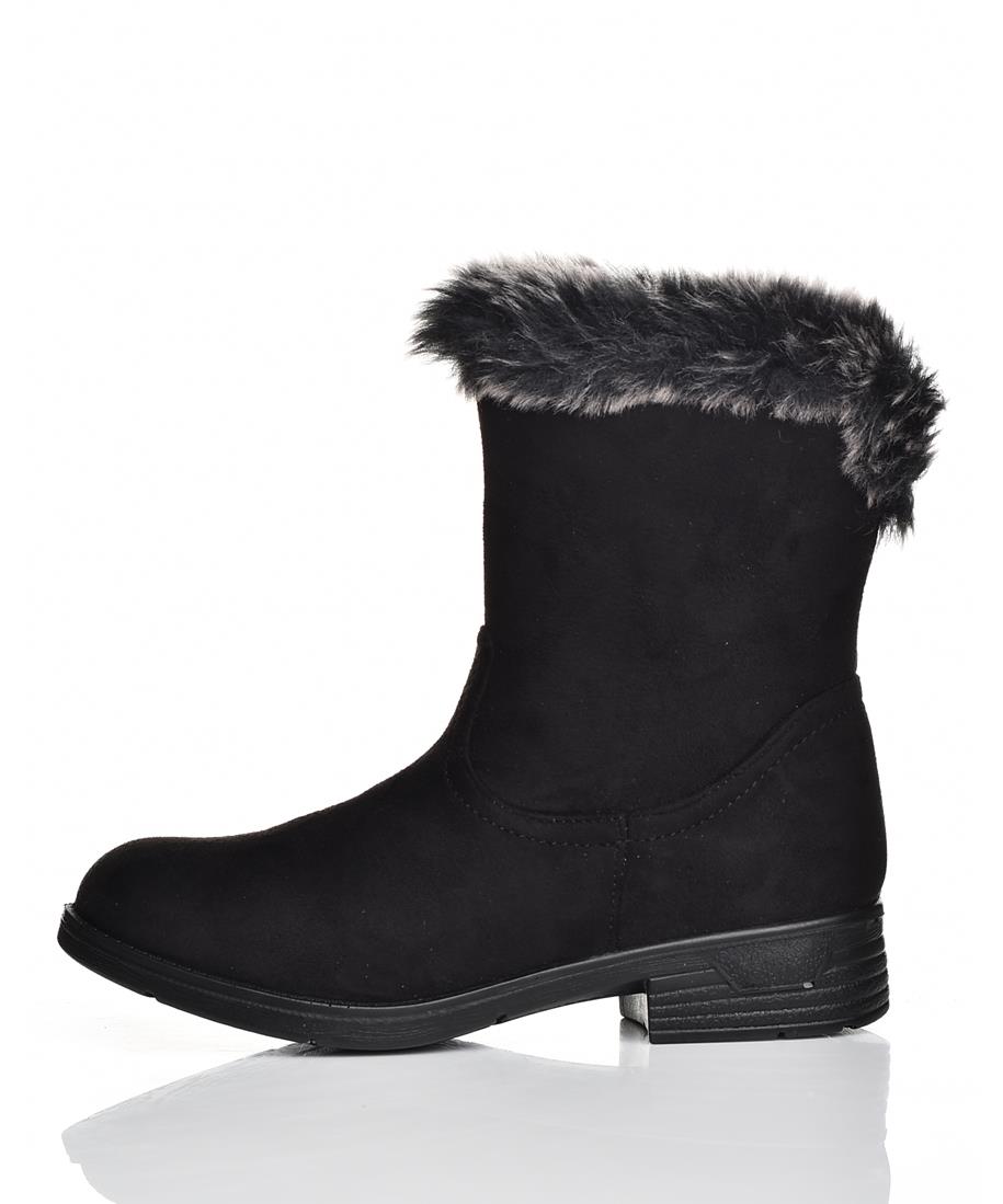 Дамски боти от еко кожа с мека пухена яка, топла вътрешна подплата и нехлъзгащо гумено ходило. Удобни, издръжливи и стилни, подходящи за ежедневие и студено време. Лесни за поддръжка, отлична изолация.