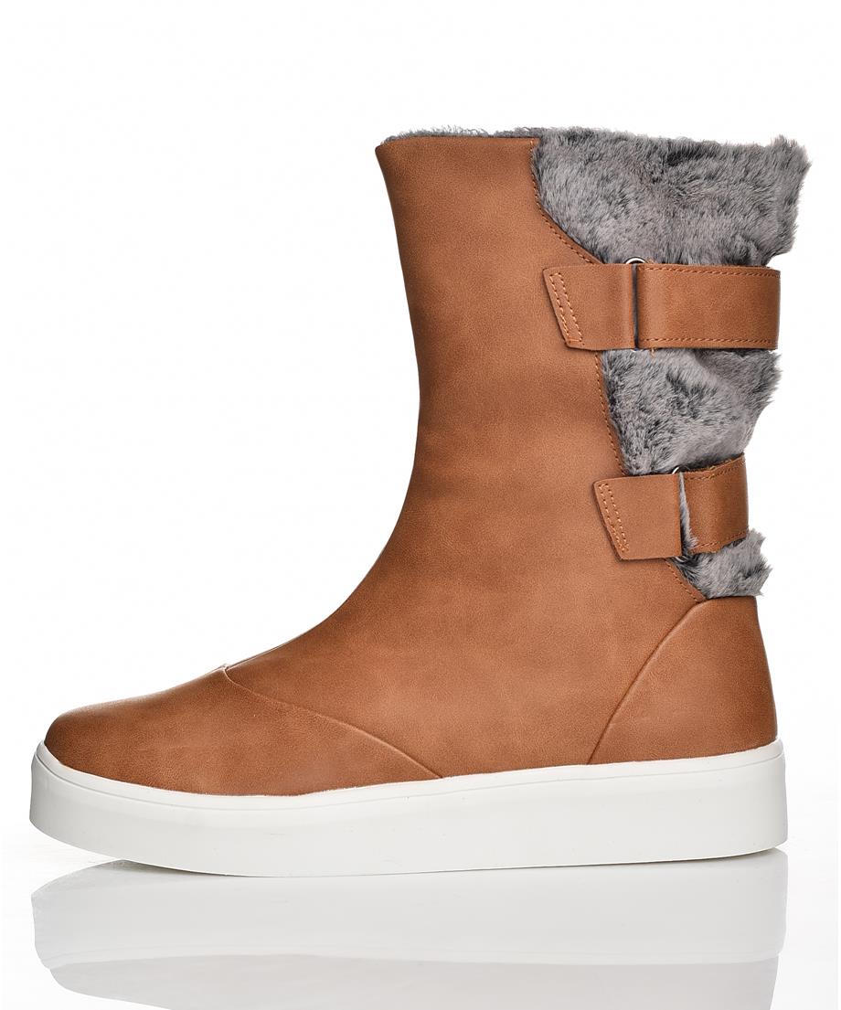 Дамски боти от еко кожа с топла пухена подплата и декоративни ремъци. Удобни, водоотблъскващи и стилни за всеки зимен ден, с грапава подметка за стабилност и модерна, елегантна линия. Перфектни за Вас!!