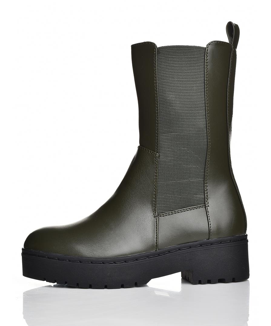 Дамски боти от еко кожа в стилен тъмнозелен цвят. Платформа и грайферно ходило за стабилност, еластични странични панели за удобство и лесно обуване. Модерен дизайн за всяка визия. Практични и модерни