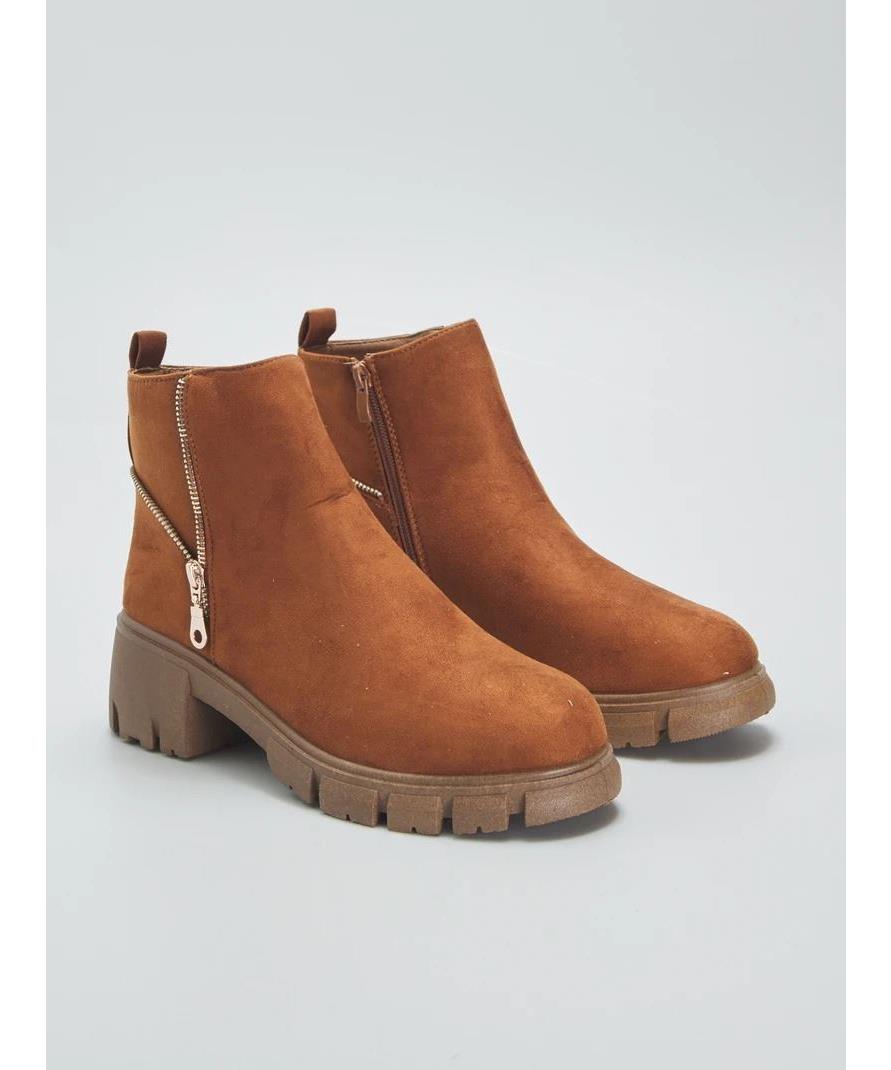 Дамски боти от естествена кожа в топло кафяво. Модерен дизайн с грайферна подметка, среден блоков ток и удобен страничен цип. Отлични за ежедневни и есенни визии с комфорт и стил.