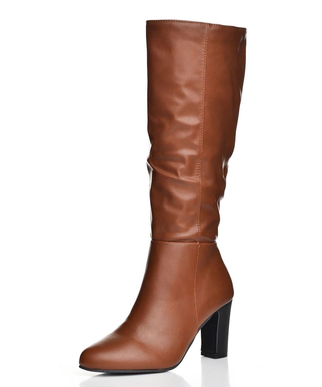 Елегантни дамски високи ботуши от еко кожа в кафяв нюанс. Меки и удобни, с подплата и стабилен висок ток. Класически стил, подходящи за ежедневие и по-официални визии през студените сезони. Топ избор!!!