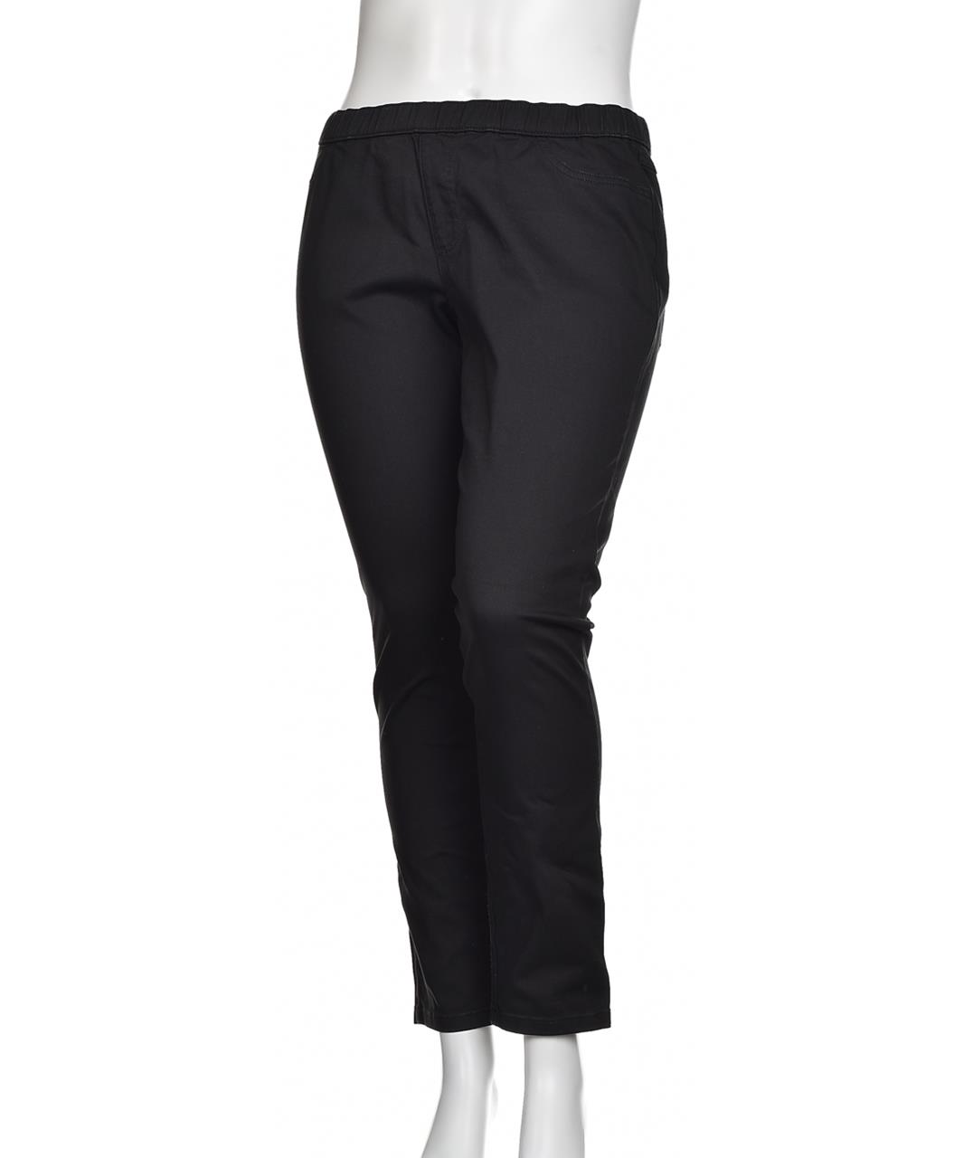 Дамски черни дънки от мек ПАМУК, с еластична талия и изчистен силует. Удобни за всеки ден, леки и дишащи, с дължина до глезена и леко стеснен крачол. Комбинирайте с тениска или риза за небрежен стил!!