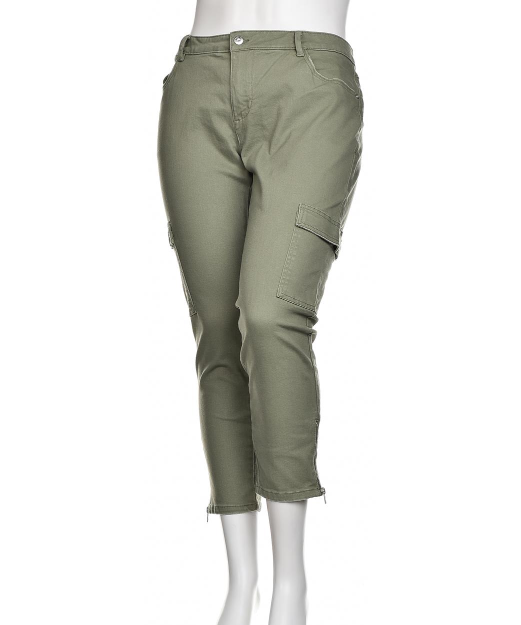 Дамски памучни дънки в маслено-зелен цвят, капри дължина, прав силует с джобове карго и ципове на глезените. Мек памук, приятна еластичност, лесна поддръжка, идеални за всеки ден. И модерен акцент.!!!