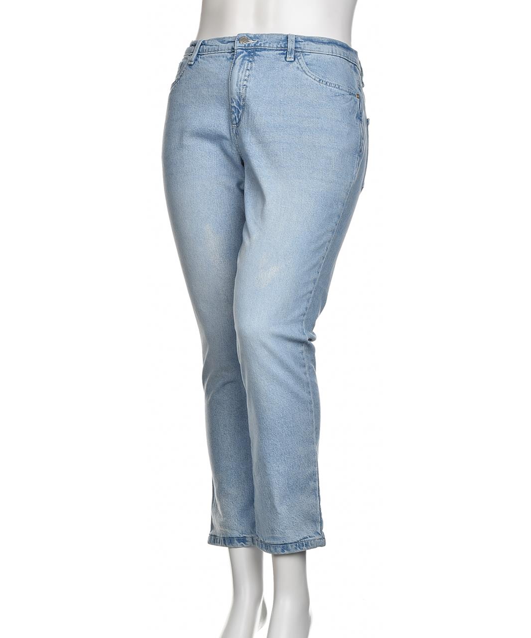 Дамски дънки от 100% памук, светъл деним с леко износване, права кройка, средна талия и дължина до глезена. Удобни, дишащи и лесни за комбиниране с ежедневни и елегантни визии.
