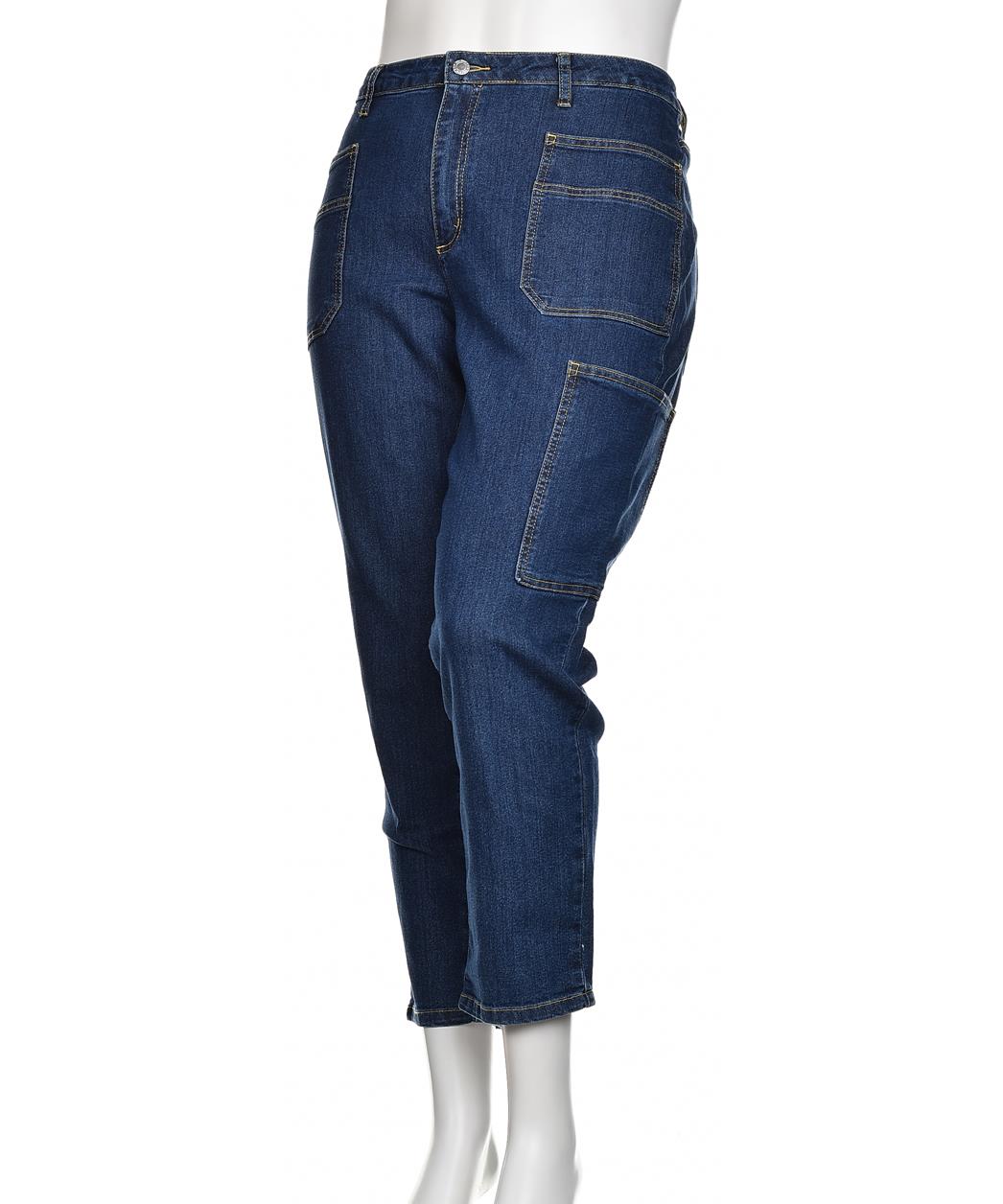 Дамски памучни дънки в тъмносин нюанс, прав силует, удобна талия и практични джобове. Къс крачол за ежедневен стил. Мека, дишаща материя за комфорт през целия ден. Подходящи за работа и свободно време
