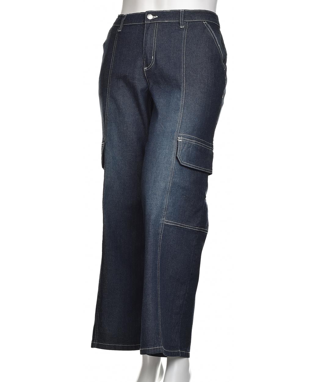Дамски памучни дънки в тъмносиньо с прав крачол и актуални странични джобове с капаци. Комфортна кройка, контрастни шевове и устойчив плат – идеални за всекидневие и градски стил. Практични и стилни!