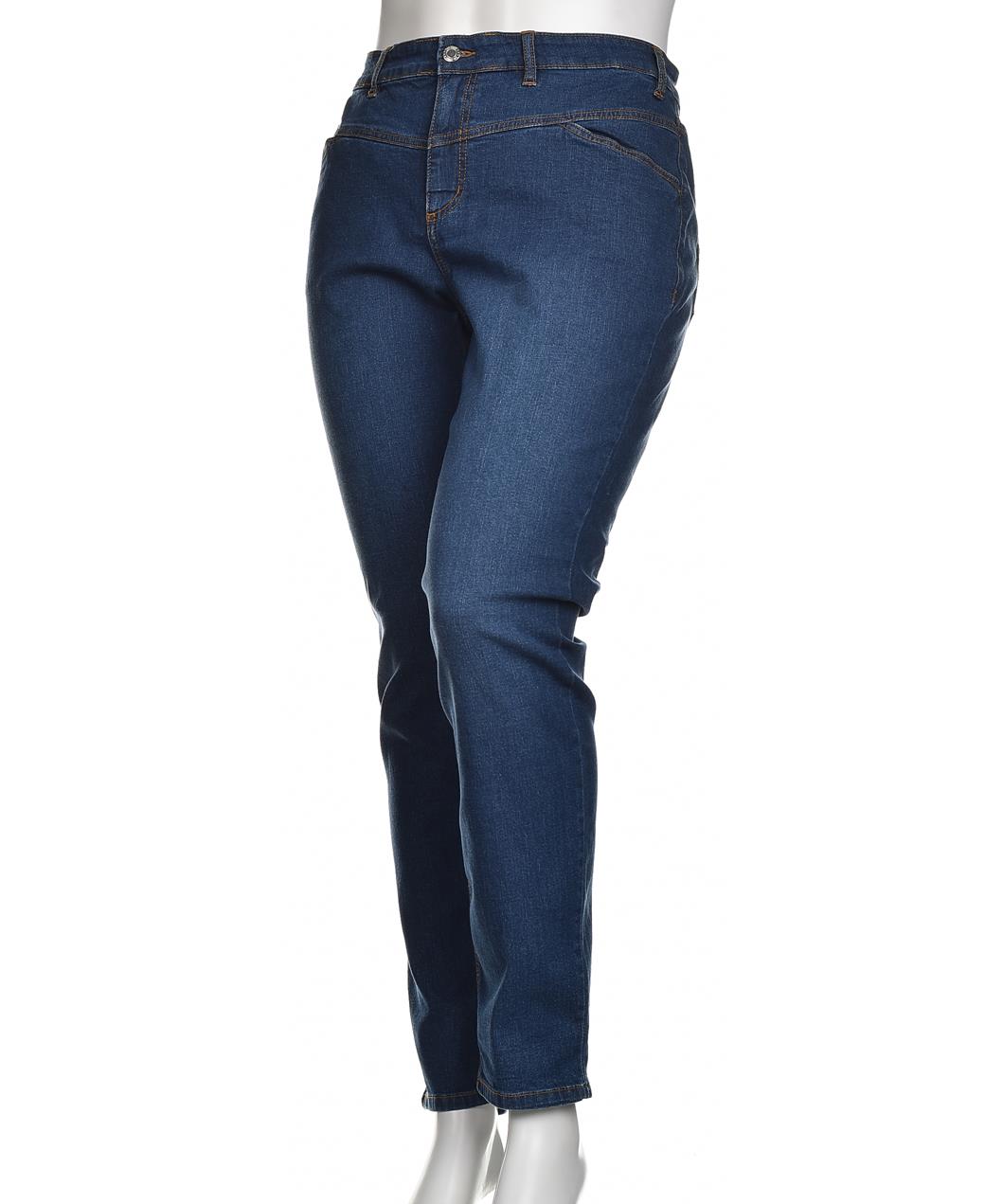 Класически дамски дънки от 100% памук в тъмносин нюанс. Втален силует, средна талия, два предни и два задни джоба, спираловидни шевове и метално копче. Удобни за ежедневие. Удобна кройка и лесна грижа