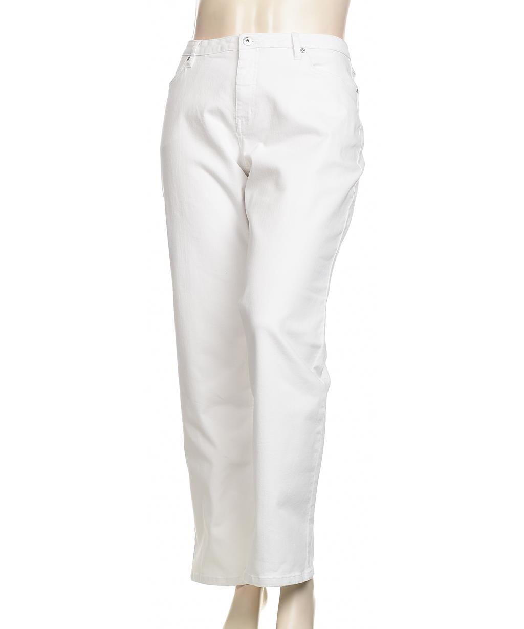 Дамски памучни дънки в класическо бяло. Висока талия, прав силует и удобна кройка за ежедневна употреба. Непрозрачна материя, джобове и закопчаване с копче и цип. Лесни за комбиниране. Стилни и леки!!