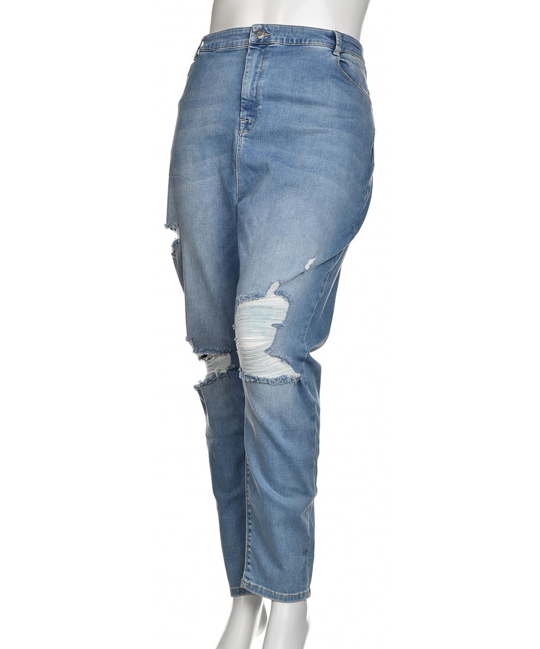 Дамски памучни дънки в светъл син деним, висока талия и изтъркани детайли на коленете. Удобна модерна кройка, идеални за ежедневно носене. Джобове, бутон и цип. Мие се в машина, меко усещане и здравина.