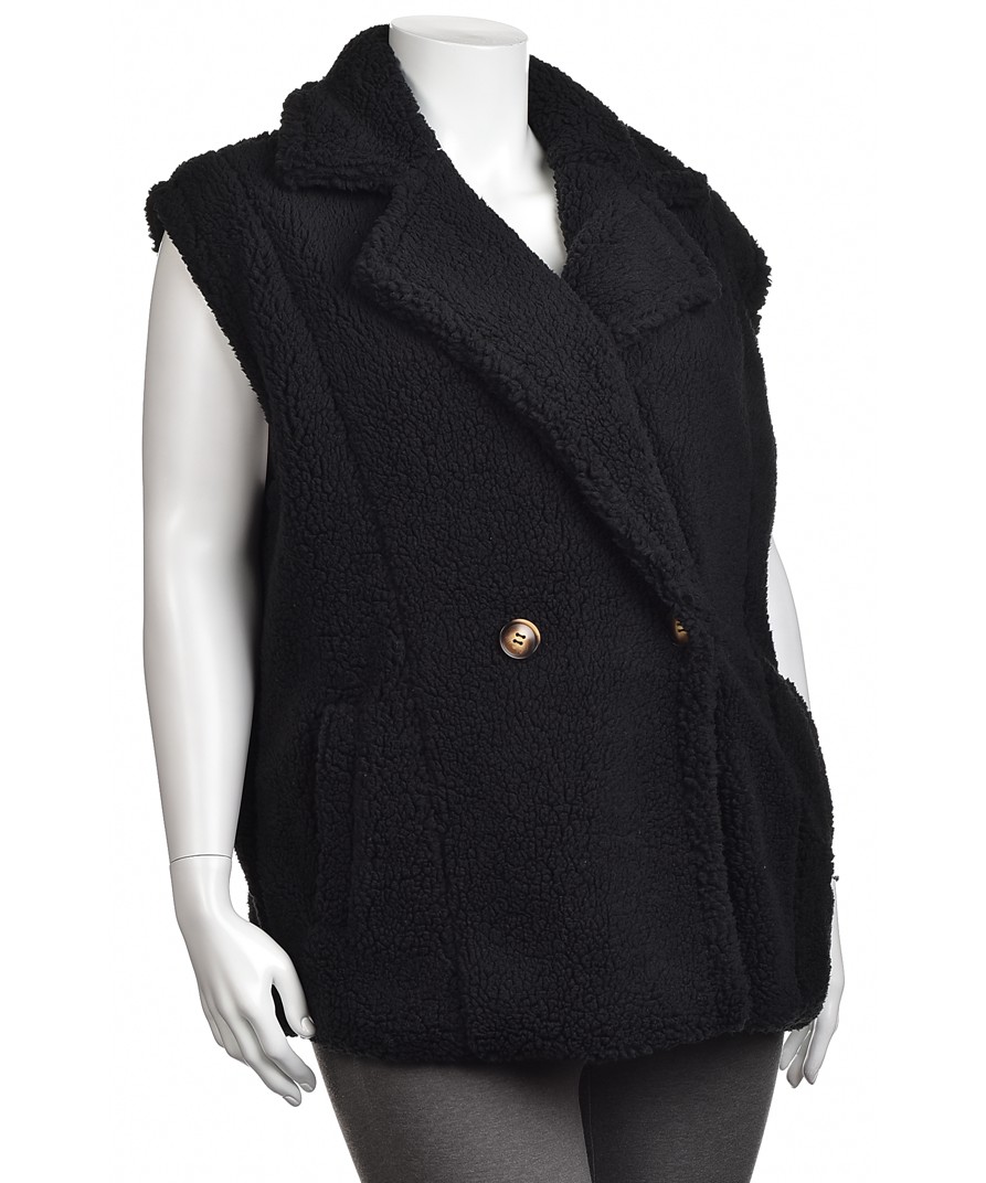 Дамски елек от плюшено тедди материал в елегантно черно. Без ръкави, с широка шал-яка, двуредно закопчаване, джобове и мека текстура. Топъл, модерен и лесен за комбиниране. Подходящ за всеки гардероб.