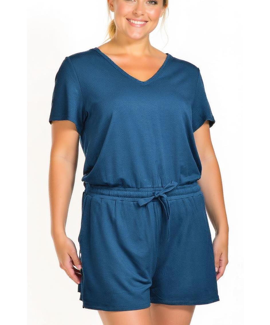Елегантен дамски гащеризон от вискоза в модерен син цвят. С къси ръкави и къси шорти, подходящ за ежедневна употреба. Лек и дишащ материал, осигуряващ комфорт и свобода на движение. Идеален за летни дни.