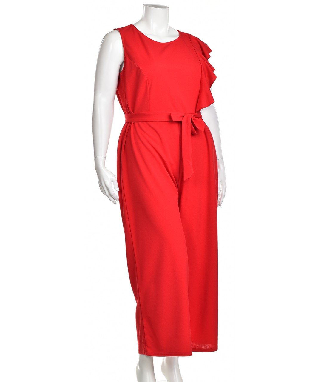 Елегантен дамски гащеризон с безупречен дизайн в наситено червен цвят. Разполага с нежни къси ръкави, нестандартни детайли от една страна, и връзка на талията за подчертаване на силуета. Съчетание на стил и комфорт за всяка модерна жена.
