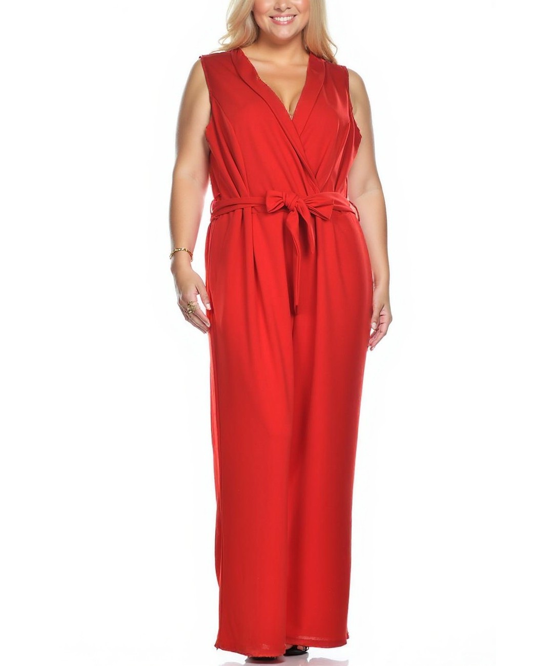 Елегантен червен дамски гащеризон без ръкави с шал яка и елегантен колан на талията. Свободна кройка, подходящ за различни поводи. Лека и удобна материя, осигуряваща комфорт и стил.