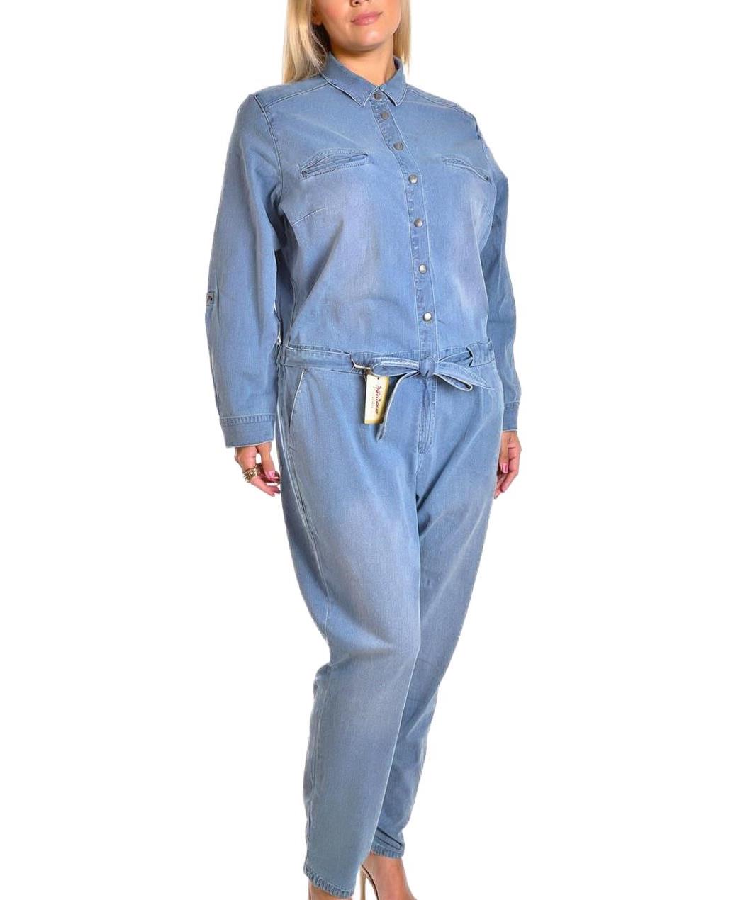 Стилен дамски гащеризон от памук в светлосиньо, с яка и копчета отпред, дълги ръкави, регулируема талия с връзка и удобни джобове. Мек, дишащ, идеален за всеки ден Идеален за пътуване и ежедневни визии