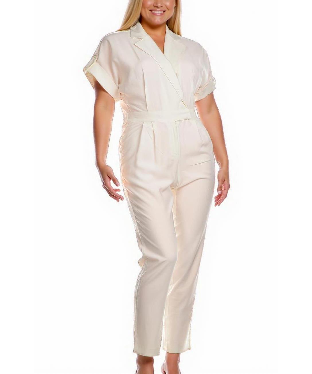 Дамски гащеризон от вискоза със свободен силует. Моделът е с къси ръкави и класическа яка. Подходящ за различни поводи, осигурява комфорт и стил. Идеален за елегантни ежедневни визии.