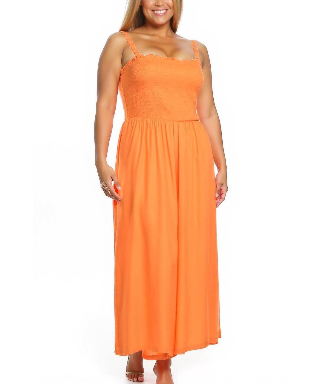 Дамският гащеризон е изработен от висококачествена вискоза, придаваща лекота и комфорт. С елегантен крой и ярък оранжев цвят, той е идеален за летни дни. Регулируемите презрамки осигуряват стабилност.