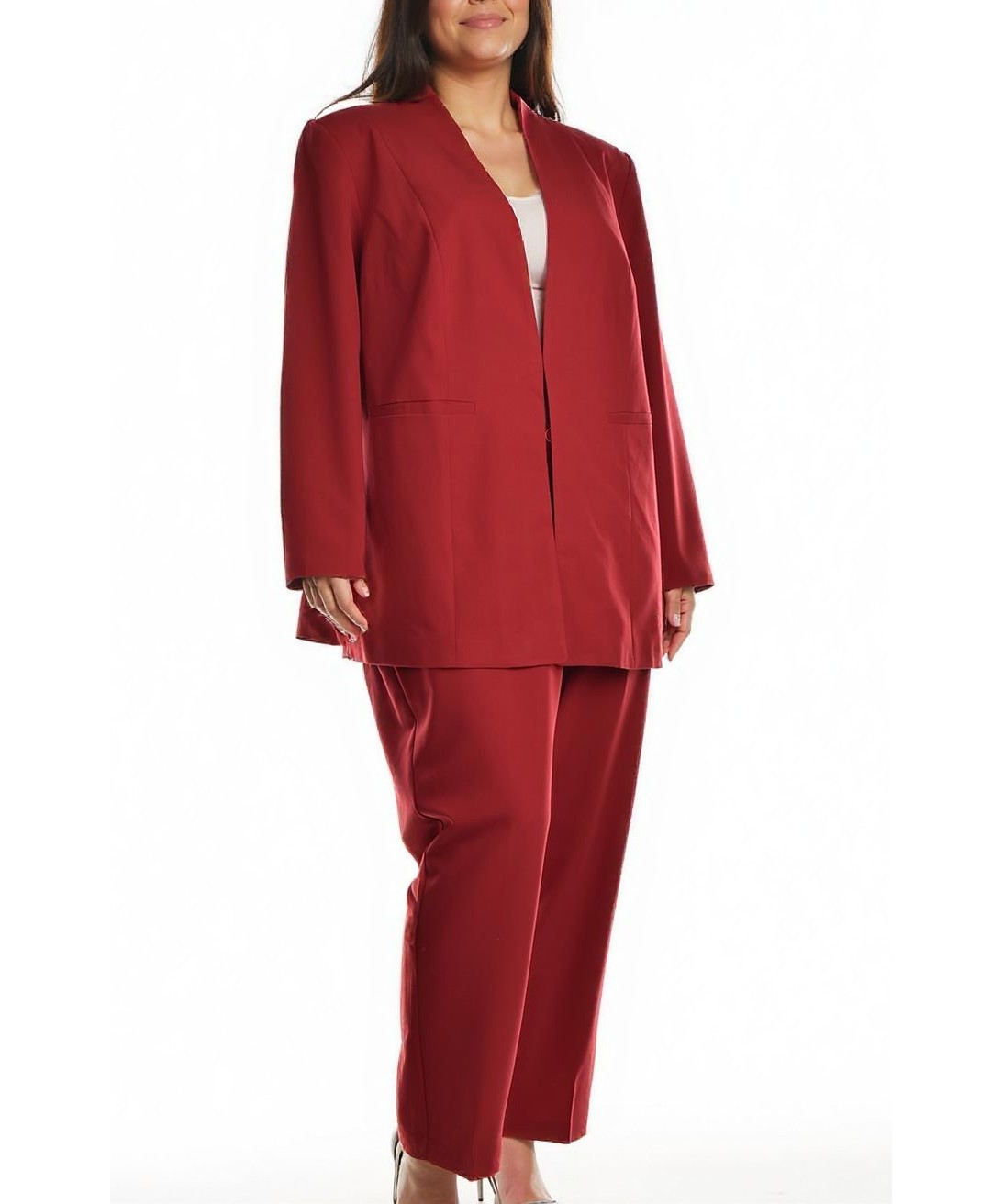 Елегантен дамски костюм от вискоза в наситено бордо. Свободно падащо сако с дискретен ревер и прав панталон. Мек материал, комфортна кройка и универсален стил за всеки повод. Идеален за офис и празник