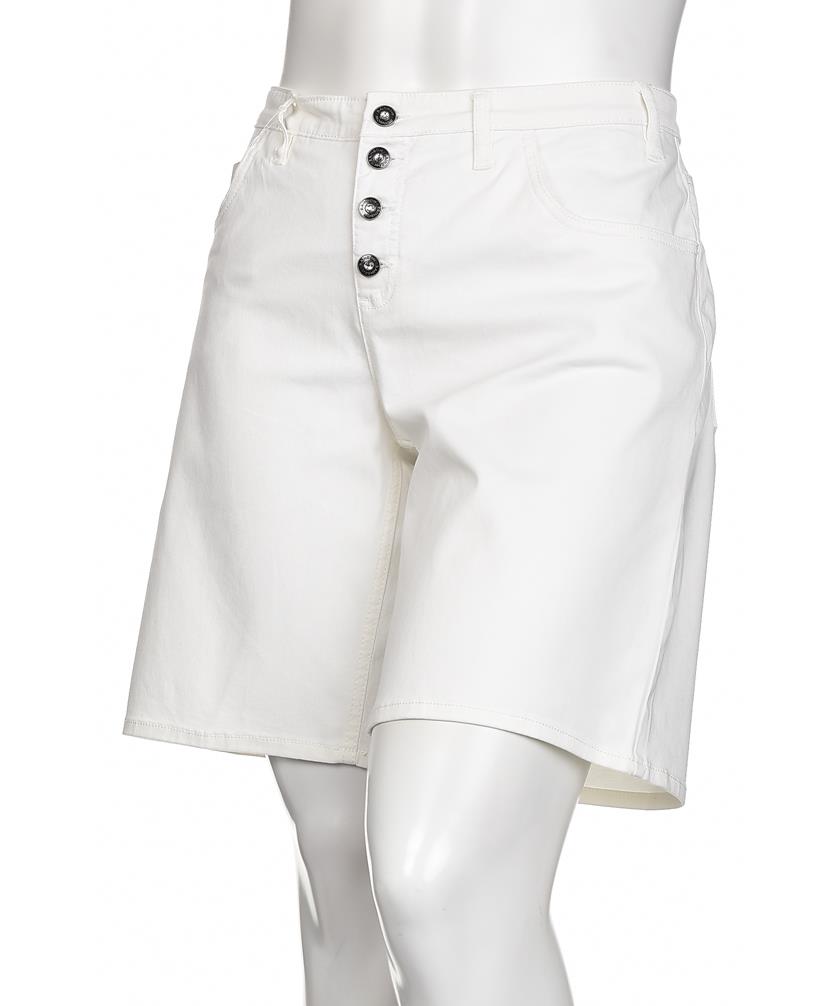 Дамски къс панталон от памук в бял цвят, с класическа кройка и пет копчета отпред. Идеален за лятото, този модел съчетава комфорт и стил, подходящ за ежедневно носене.