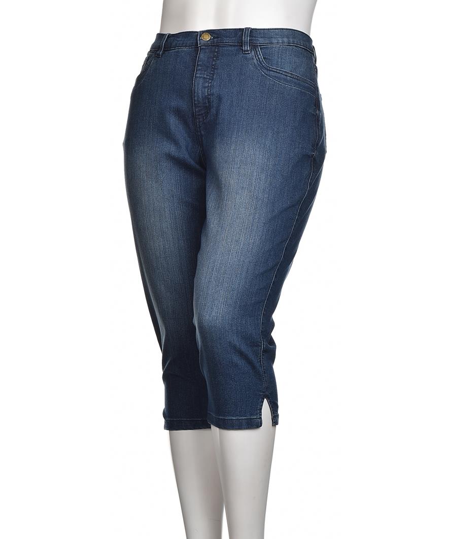 Дамски къси дънки от памук, тъмносин деним с дискретно изцветяване. Модерна кройка до коляното, с джобове, коланче и малки цепки в крачолите. Удобни и подходящи за ежедневие. Перфектни за лятото сега.