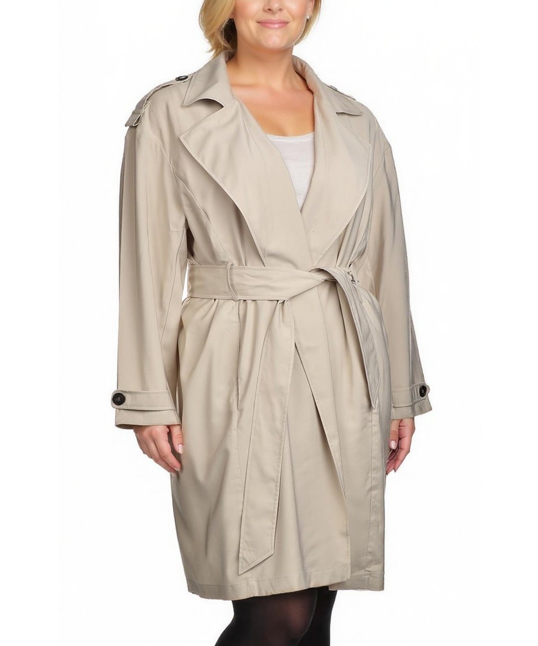 Дамски шлифер от вискоза в елегантно бежово. Класическа свободна кройка с колан, широки ревери, еполети и маншети с копчета. Мек, дишащ плат, перфектен за пролетни и есенни дни.