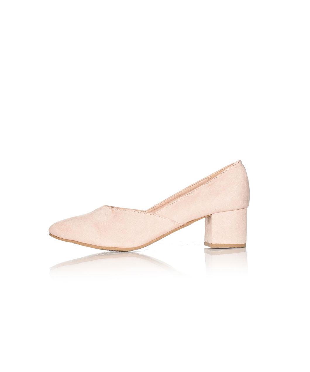 Елегантни дамски обувки в нежнорозов нюанс с нисък широк ток. Меки, удобни и стабилни, подходящи за офис и официални поводи. Класически силует, лесни за комбиниране с различни тоалети. страхотен избор