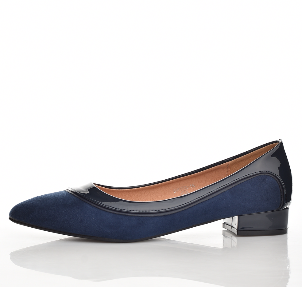Елегантни дамски обувки от естествена кожа в тъмносиньо с лакови акценти и нисък стабилен ток. Остра предна част, мека стелка и добре оформена линия — идеални за офис и официални събития. Подходящи!