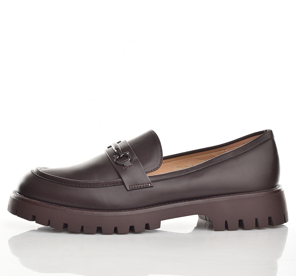 Елегантни дамски мокасини от естествена кожа в тъмнокафяв цвят. Удобна подплатена стелка, издръжлива дебела грайферна подметка и стилна метална катарама за модерен, класически вид. Идеални за всеки.