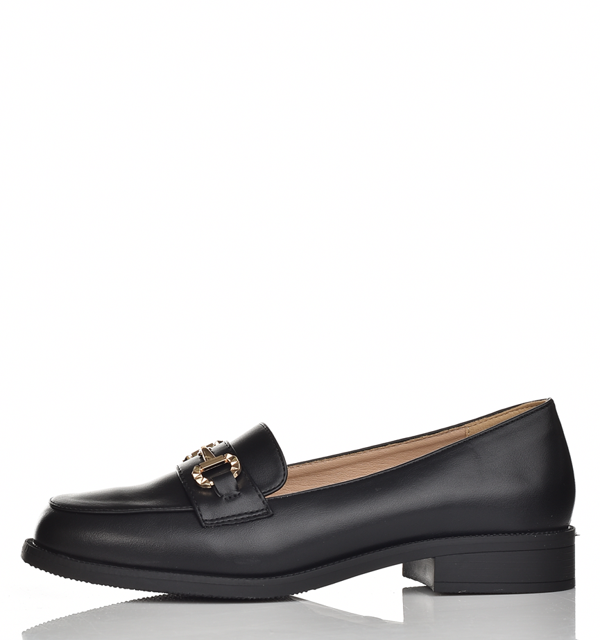 Елегантни дамски лофери от еко кожа в класическо черно. Декоративна златиста катарама, меко хастар и удобна ниска платформа. Подходящи за офис и ежедневие, стил и комфорт всеки ден. Налични номера 36-40