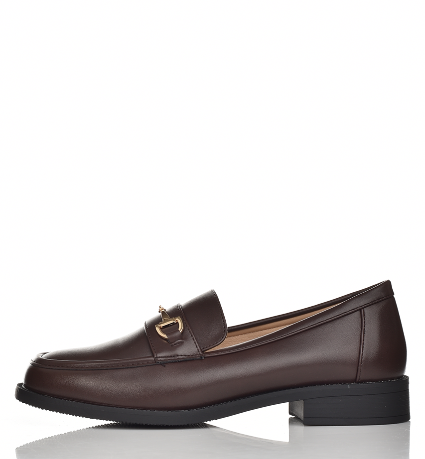 Елегантни дамски лофери от еко кожа в тъмно кафяво, с фина златиста катарама, нисък блок-ток и меко вътрешно покритие за комфорт. Подходящи за офис, ежедневие и специални случаи. Лесни за поддръжка!!!