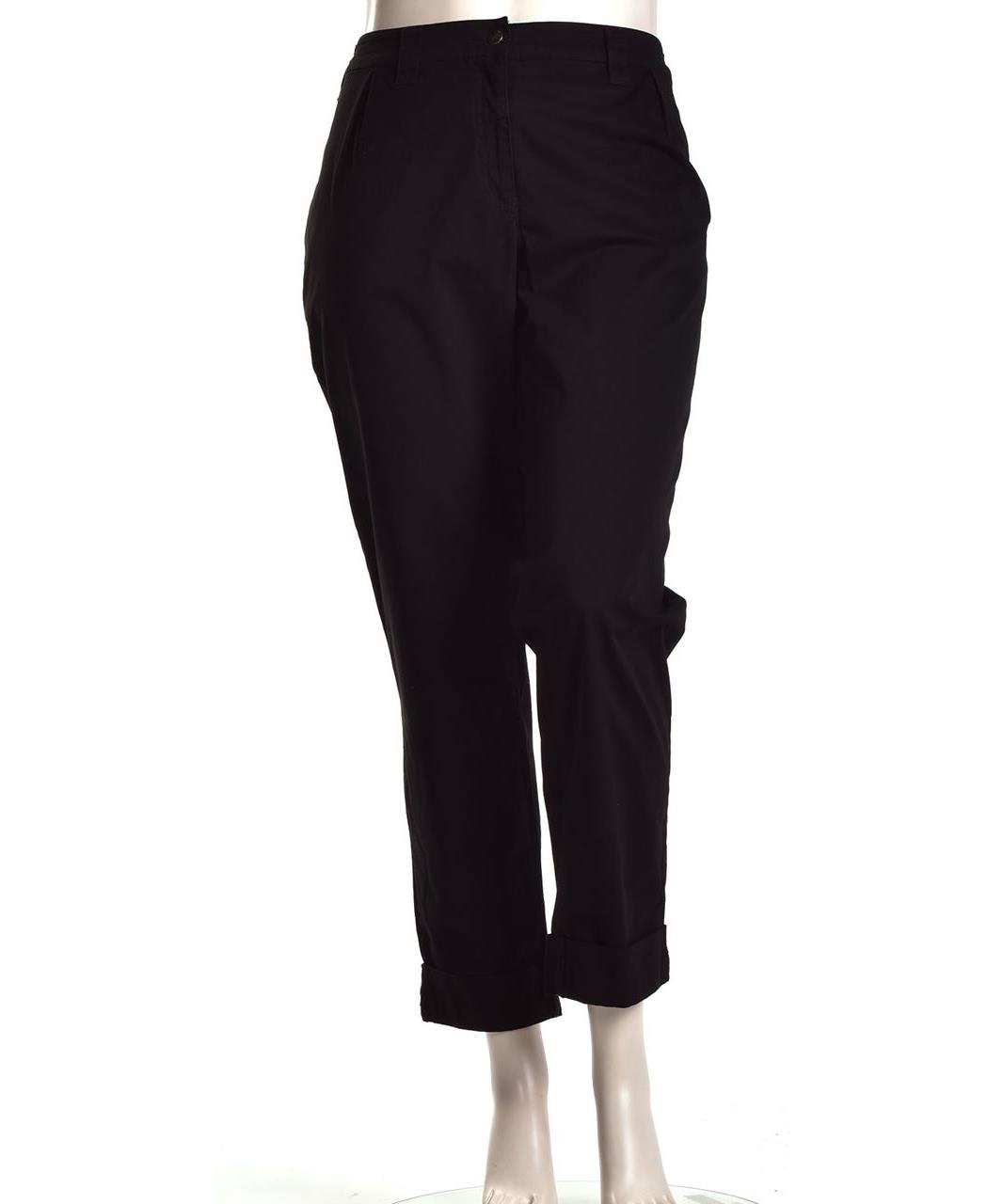 Елегантни дамски панталони от 100% памук в класическо черно. Права, леко стеснена кройка, маншет на подгъва, странични джобове и закопчаване с цип и копче. Удобни за ежедневие и офис. Лесна поддръжка.