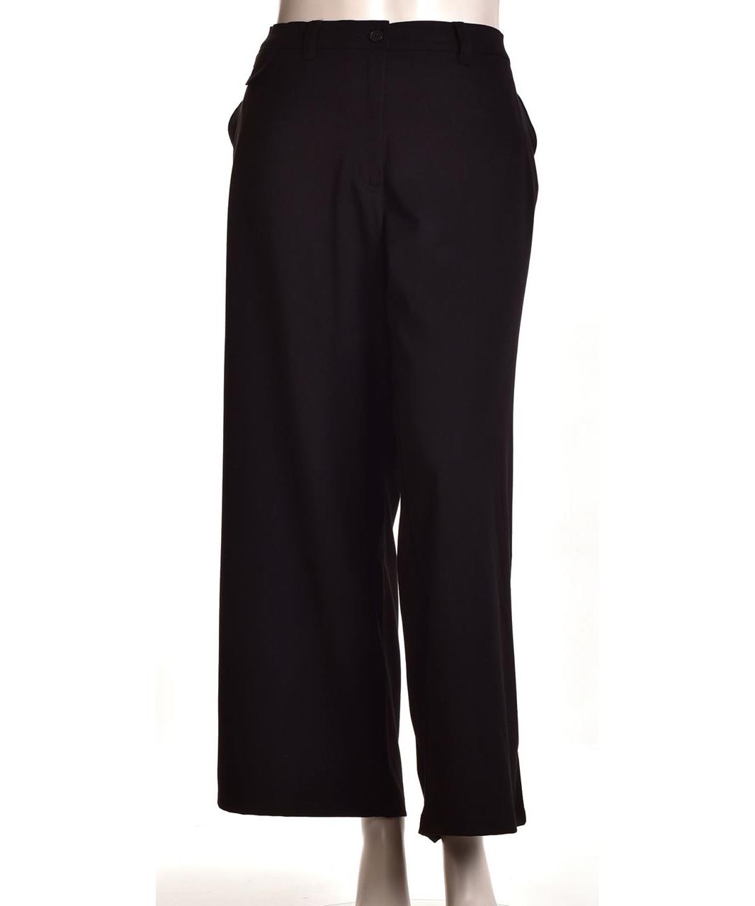 Елегантни дамски панталони от вискоза в черно. Прав силует с широка крачола, комфортна талия с копче и цип, практични джобове. Меки, дишащи, идеални за офис и ежедневен стил. Лесни за поддръжка и стилни