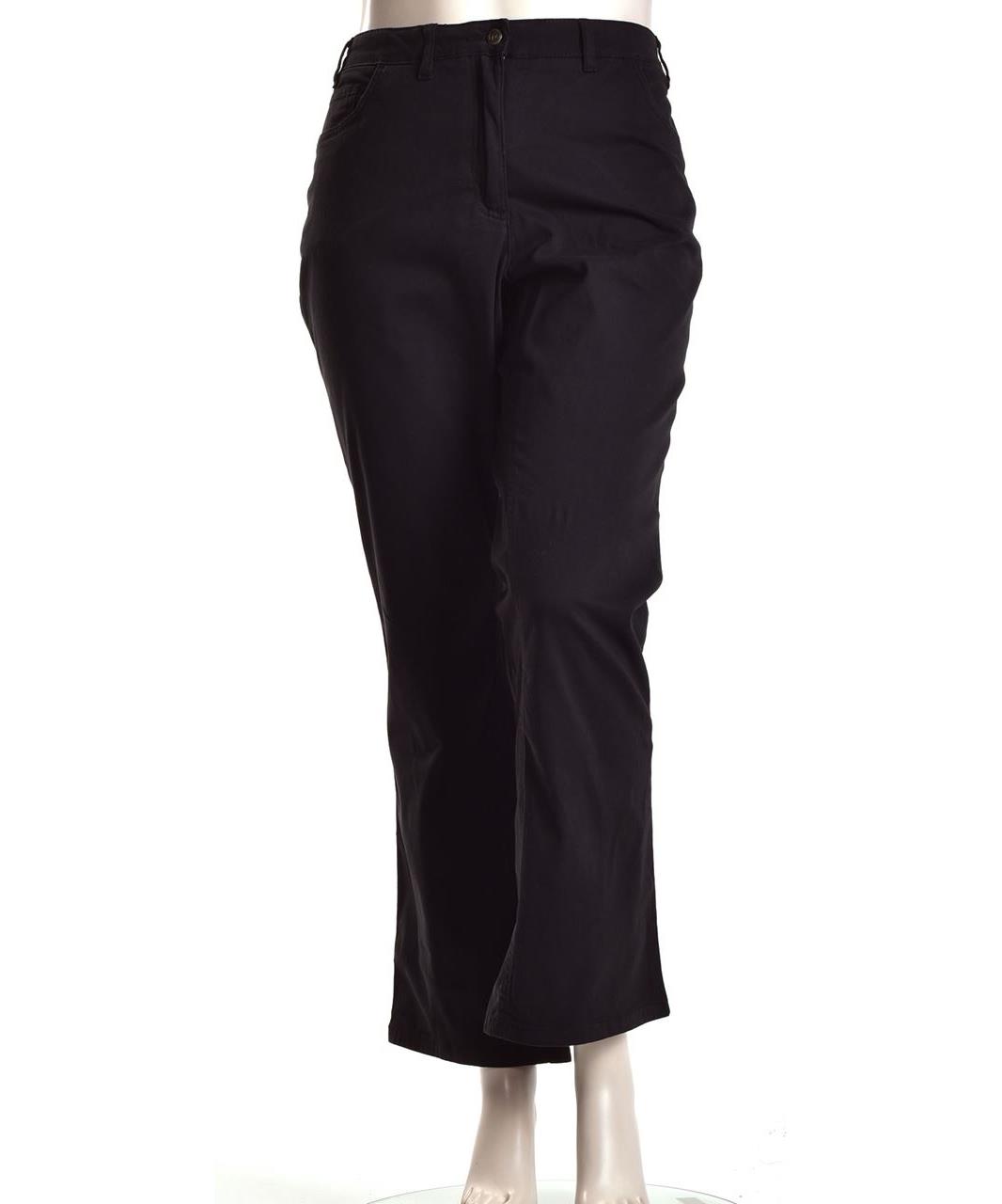 Елегантни дамски панталони от памук в черно, с класическа кройка, средна талия и удобни джобове. Меки, дишащи и подходящи за офис и ежедневие. Лесни за поддръжка. Налични размери S-XL. Модел, класика.