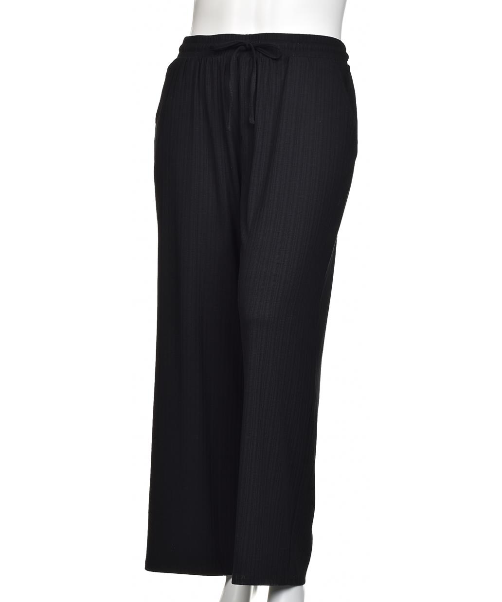 Дамски панталон от вискоза в черно, с широк крачол и свободна кройка. Еластичен колан с връзка за регулиране, мека и драпираща материя — удобни и стилни за всеки ден.