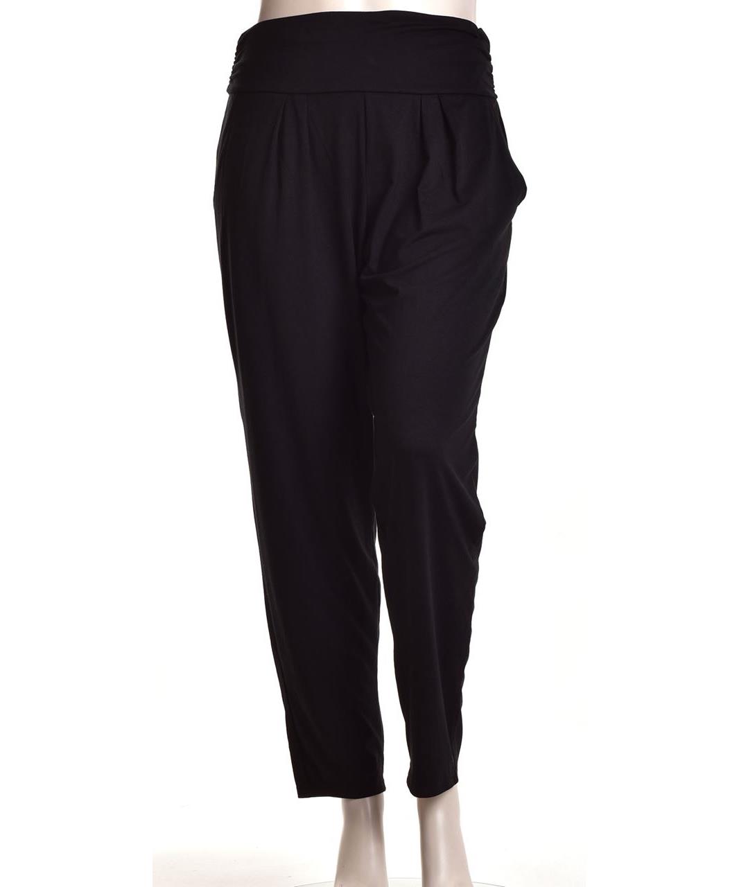 Дамски панталон от вискоза - мек, дишащ плат с еластична талия и странични джобове. Леко стеснен силует, подходящ за всеки ден и по-елегантни поводи. Комфорт и стил в черно. Пране 30°C, без сушилня.
