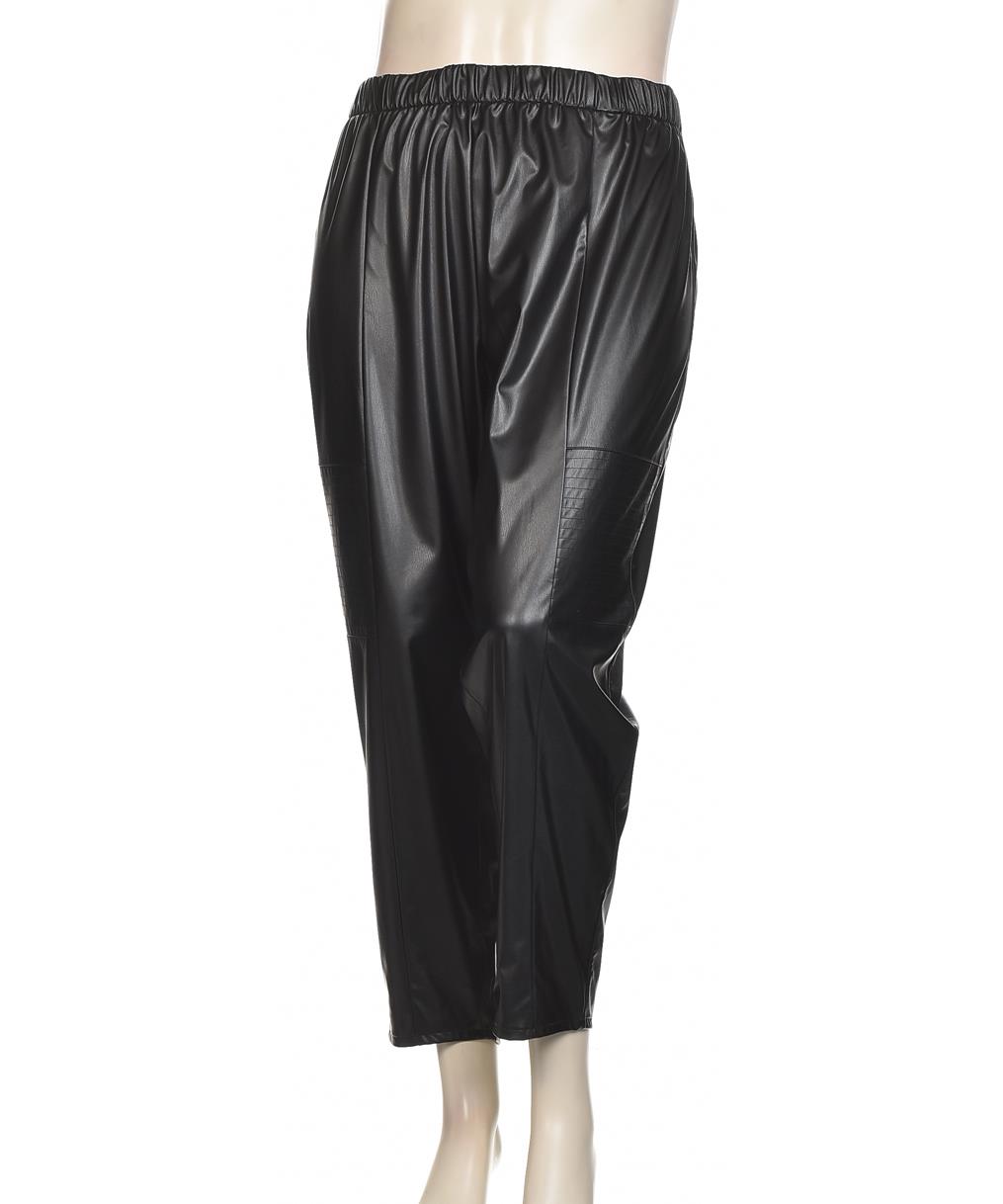 Дамски панталон от еко кожа с еластична талия, прав и леко широк силует, модерно лъскав финиш и декоративен детайл. Удобен, лесен за комбиниране и подходящ за ежедневни и по-елегантни визии. За сезона.