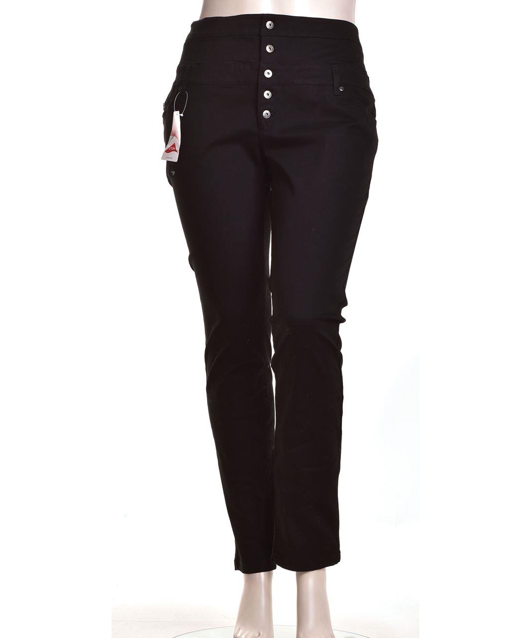 Елегантен дамски памучен панталон в класическо черно, висока талия с декоративни копчета, прав силует и удобни джобове. Мека материя, лесна поддръжка. Модерен избор за всеки ден и по-официални случаи.