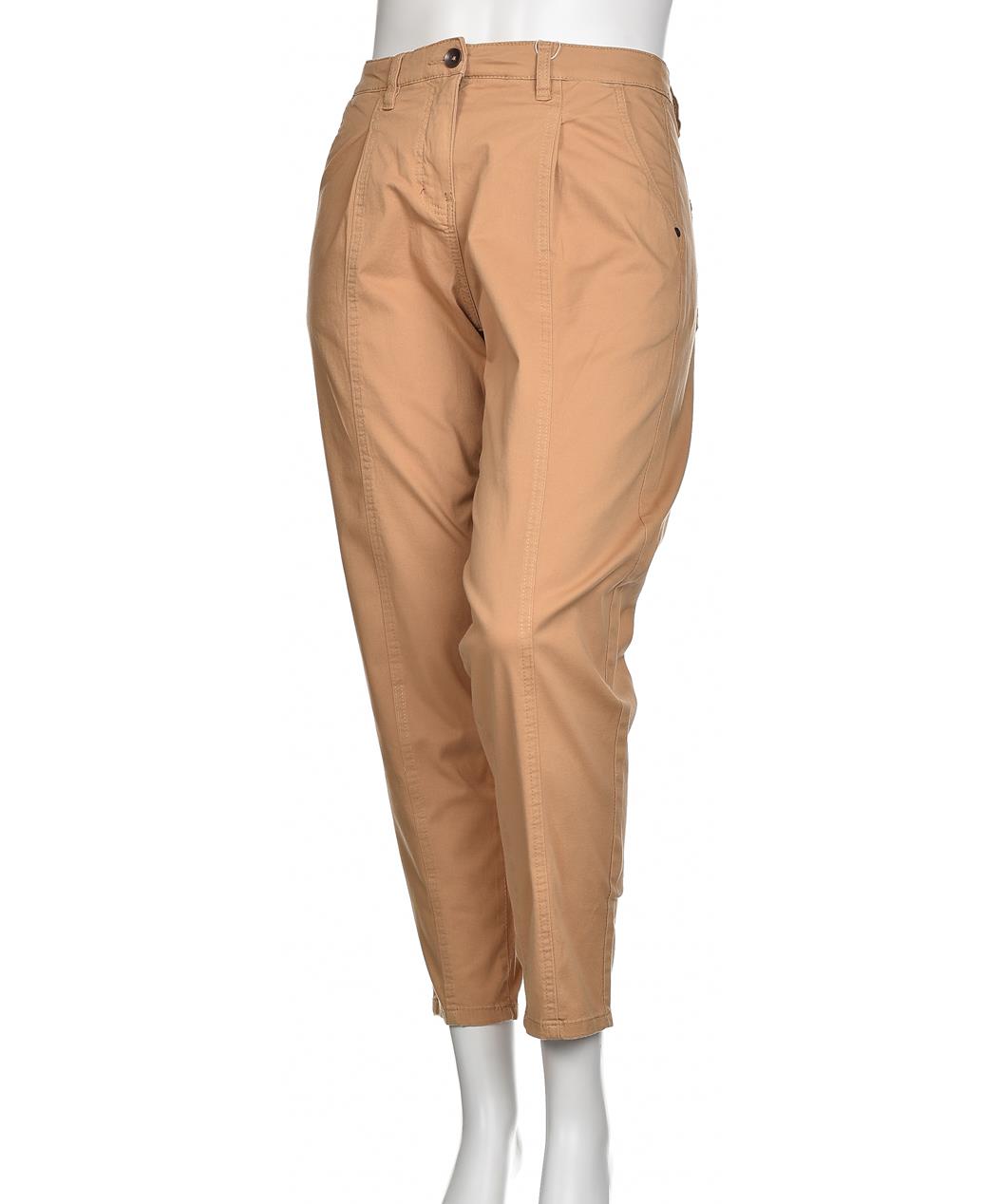 Дамски панталон от памук в светлобежов цвят. Моделът е с висока талия, закопчаване с цип и копче, и два странични джоба. Подходящ за ежедневна визия, като съчетава комфорт с елегантност.