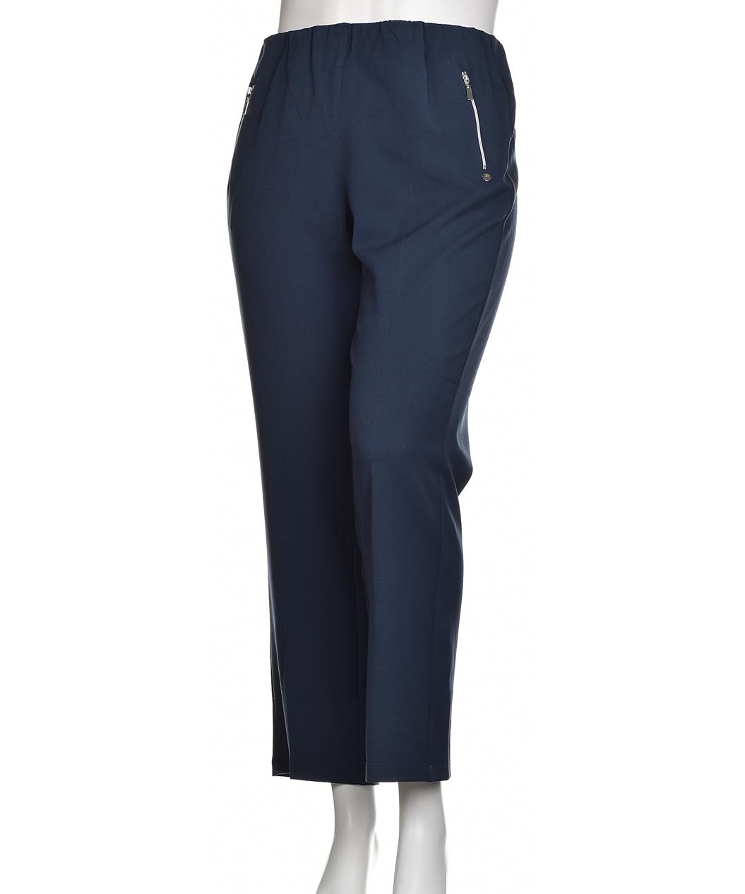 Елегантен дамски панталон от вискоза в тъмносин цвят. Прав силует, ластична талия и декоративни ципове отпред. Мек, дишащ материал, удобен за ежедневие и офис визия. Лесна поддръжка, стилен ежедневен.