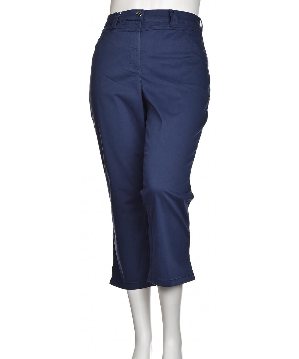 Дамски памучен панталон тъмносиньо, 7/8 дължина, прав силует. Висока талия, коланни ленти и джобове. Мек, дишащ памук, лесна поддръжка и ежедневно удобство Подходящи за офис, свободно време и ежедневни аутфити