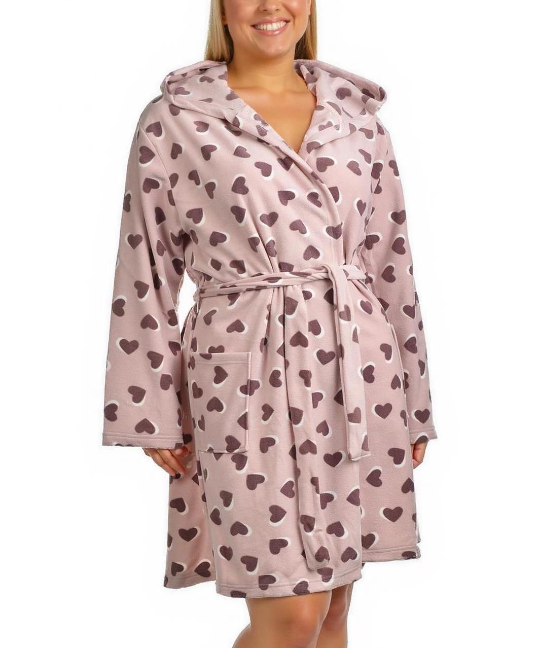 Дамски плюшен халат от памук, мек и топъл, с качулка, колан и джобове. Нежен розов десен с малки сърца. Идеален за у дома и подарък, размери удобни и комфортни през цялата година. Перфектен подарък!!!