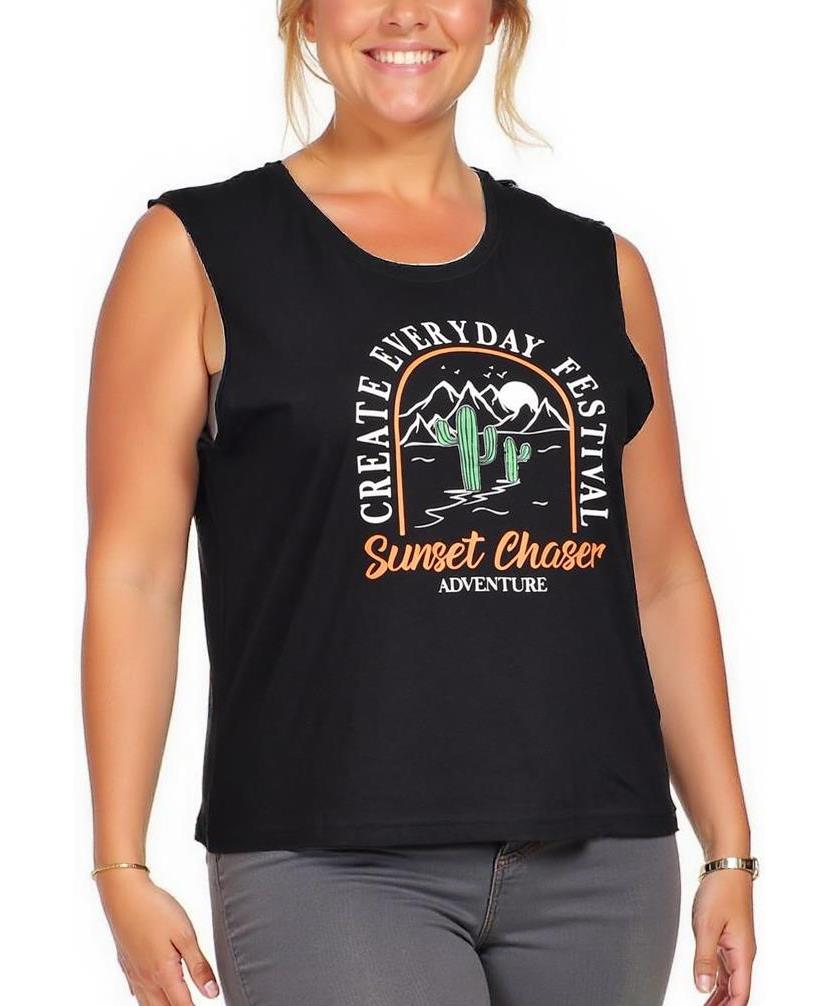 Дамски потник от памук в черен цвят, с щампа "Create Everyday Festival, Sunset Chaser Adventure". Модерен и удобен дизайн, подходящ за ежедневна употреба и комбиниране с различни стилове.